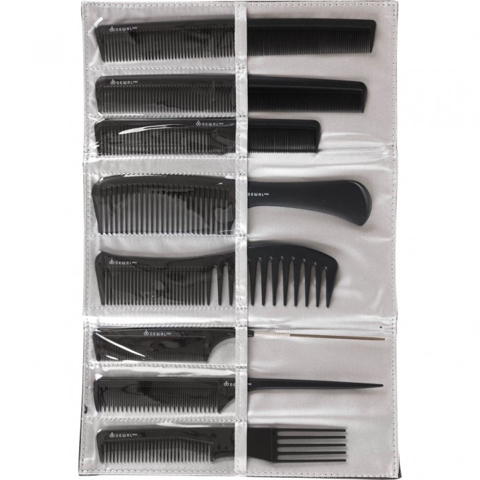 Набор расчесок DEWAL в черном чехле, черный, 8 шт SET10159